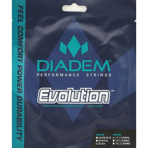 Diadem Evolution is a monofilament string designed to compliment spin. This string is incredibly responsive while playing with plenty of comfort and durability. Constructed out of polyamide monofilament with a low friction silicon based coating, this string is perfect for players that want to hybrid with a shaped Diadem string. Thanks to the Diadem specific design, this string can handle the ultra sharp edges of Solstice and Elite XT while delivering excellent performance. While this string does not have the same spin potential as the star shaped polyesters that Diadem is known for, it adds comfort and power to a hybrid string bed while increasing durability.